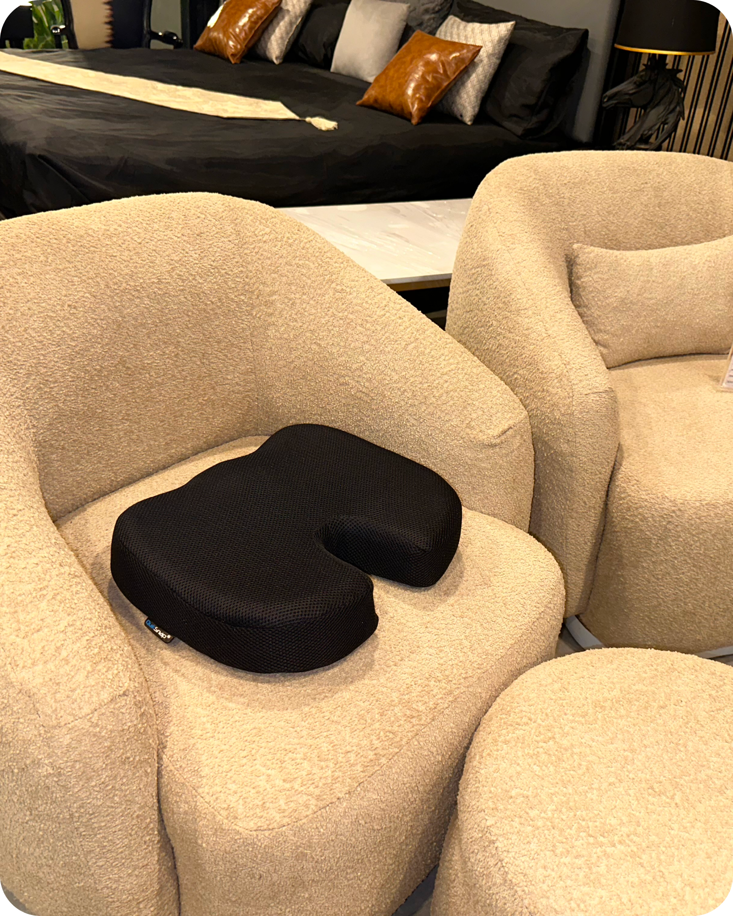 - Place the PremiumEXO seat cushion on your desired chair or car seat.