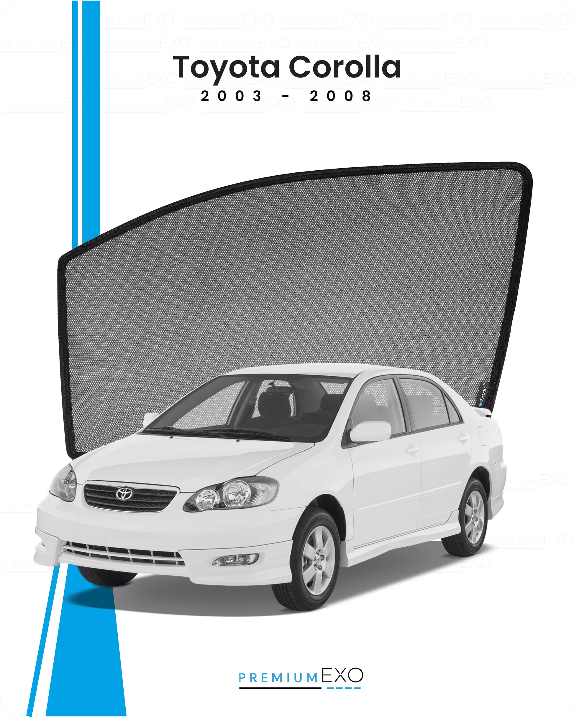 Every PremiumExo sunshade is precisely engineered to match your Toyota Corolla 2000-2008 window dimensions, ensuring a seamless fit and full coverage. Whether you’re driving a Toyota Corolla 2000 or 2008 variant, we’ve custom-designed our sunshades based on your car’s year and design specs.